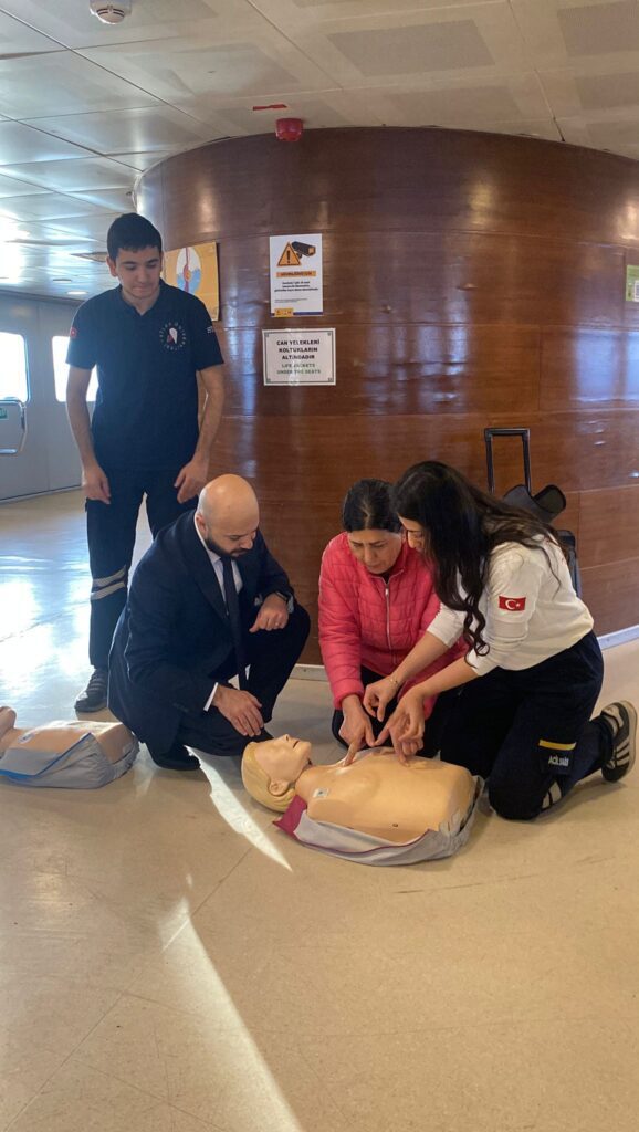 Sabah saatlerinde Beşiktaş Barbaros Hayrettin Paşa İskelesi’nden hareket eden vapurumuzda, Öğrencilerimle birlikte yolculara basit ilk yardım eğitimi verdik. Eğitim sırasında ilk yardımın temel adımlarını paylaştık: ortamın güvenliğinin sağlanması, bilinç ve solunum kontrolleri, doğru kalp masajı ritmi ve gerektiğinde Heimlich manevrası gibi kritik konular üzerinde durduk.